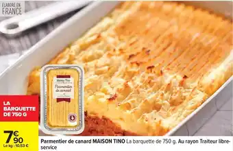 Actuellement en offre chez Carrefour Drive : Parmentier - de canard maison tino ✅ Valable du 27-01 au 9-02.