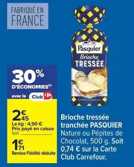 Le prix de l'offre Pasquier - brioche tressée tranchée se trouve également en haut de la page, ainsi que la date à laquelle l'offre est disponible. Vous pouvez également vérifier les prix dans le Catalogue Carrefour Drive actuel ou sur le site Internet de Carrefour Drive. Les offres vous permettent d'acheter les produits Carrefour Drive au prix le plus bas.