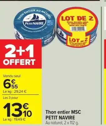 Actuellement en offre chez Carrefour Drive : PETIT NAVIRE Thon entier MSC ✅ Valable du 28-04 au 11-05.