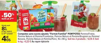 Offre Pom'potes - compotes sans sucres ajoutés format familial chez Carrefour Drive