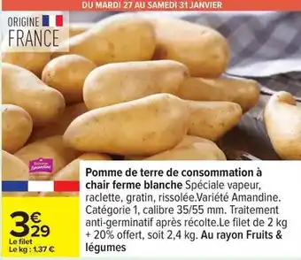 Actuellement en offre chez Carrefour Drive : Pomme de terre de consommation à chair ferme blanche ✅ Valable du 27-01 au 9-02.
