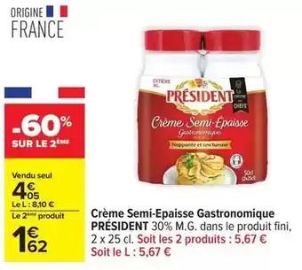 Actuellement en offre chez Carrefour Drive : Président - crème semi-epaisse gastronomique ✅ Valable du 24-02 au 9-03.