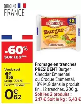 Offre Président - fromage en tranches chez Carrefour Drive