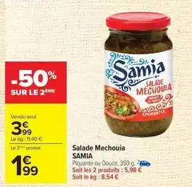 Le prix de l'offre Samia - salade mechouia se trouve également en haut de la page, ainsi que la date à laquelle l'offre est disponible. Vous pouvez également vérifier les prix dans le Catalogue Carrefour Drive actuel ou sur le site Internet de Carrefour Drive. Les offres vous permettent d'acheter les produits Carrefour Drive au prix le plus bas.
