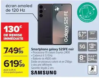 Samsung - smartphone galaxy s25fe noir offres et promotions en ligne chez Carrefour Drive