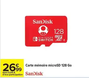 Sandisk - carte mémoire microsd 128 go offres et promotions en ligne chez Carrefour Drive