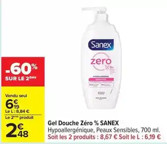 Actuellement en offre chez Carrefour Drive : Sanex - gel douche zéro % ✅ Valable du 13-01 au 26-01.