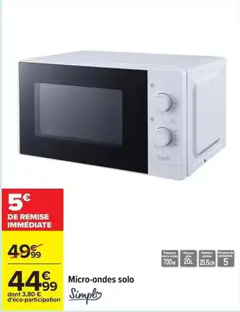 Offre Simply - micro-ondes solo chez Carrefour Drive