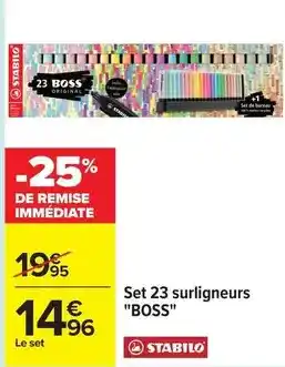 Actuellement en offre chez Carrefour Drive : Stabilo - set 23 surligneurs boss ✅ Valable du 17-02 au 2-03.