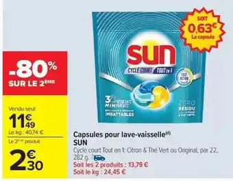 Offre Sun - capsules pour lave-vaisselle chez Carrefour Drive