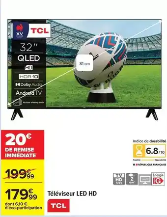 Actuellement en offre chez Carrefour Drive : Tcl - téléviseur led hd ✅ Valable du 17-02 au 2-03.