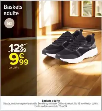 Actuellement en offre chez Carrefour Drive : Tex - baskets adulte ✅ Valable du 17-02 au 1-03.