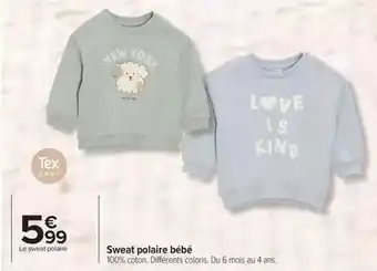 Actuellement en offre chez Carrefour Drive : Tex - sweat polaire bébé ✅ Valable du 13-01 au 26-01.