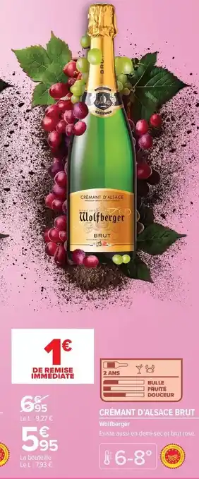 Actuellement en offre chez Carrefour Drive : Wolfberger - crémant d'alsace brut ✅ Valable du 24-03 au 6-04.