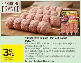 4 brochettes de porc plein grill nature socopa : offres et promos Carrefour Market à découvrir