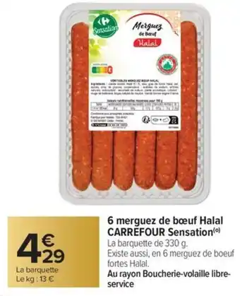 Actuellement en offre chez Carrefour Market : 6 merguez de bœuf halal carrefour sensation ✅ Valable du 17-02 au 2-03.
