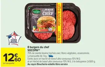 Actuellement en offre chez Carrefour Market : 8 burgers du chef socopa ✅ Valable du 10-02 au 22-02.
