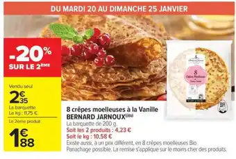 Actuellement en offre chez Carrefour Market : 8 crêpes moelleuses à la Vanille BERNARD JARNOUX ✅ Valable du 20-01 au 2-02.