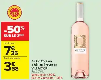 Actuellement en offre chez Carrefour Market : A.o.p. côteaux d'aix-en-provence villa d'or ✅ Valable du 28-04 au 10-05.