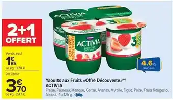 Offre Activia - yaourts aux fruits offre découverte chez Carrefour Market