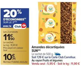 Amandes décortiquées sun : offres et promos Carrefour Market à découvrir
