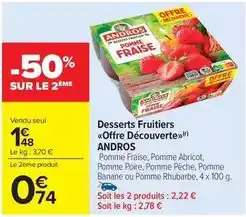 Actuellement en offre chez Carrefour Market : Andros - desserts fruitiers offre découverte ✅ Valable du 20-01 au 2-02.
