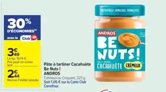 Actuellement en offre chez Carrefour Market : ANDROS Pâte à tartiner Cacahuète Be Nuts! ✅ Valable du 2-01 au 11-01.
