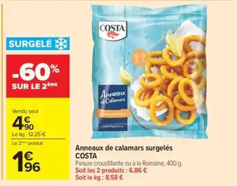 ANNEAUX DE CALAMARS SURGELÉS COSTA offres et promotions en ligne chez Carrefour Market
