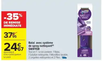 Actuellement en offre chez Carrefour Market : Balai avec système de spray nettoyant SWIFFER ✅ Valable du 6-01 au 18-01.