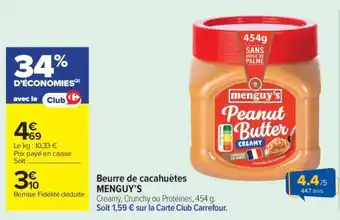 Actuellement en offre chez Carrefour Market : Beurre de Cacahuètes 'Menguy's' ✅ Valable du 17-03 au 29-03.