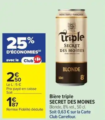 En plus de l'offre Bière triple secret des moines, Carrefour Market propose une large gamme de produits. Consultez le Catalogue Carrefour Market hebdomadaire pour découvrir les meilleures offres et promotions. En plus de Bière triple secret des moines, il y a aussi : Bière Triple Secret des Moines, Triple secret des moines bière & Bière Blonde Triple Secret Des Moines.