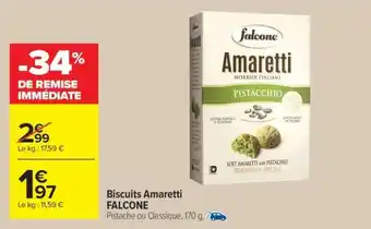 Actuellement en offre chez Carrefour Market : Biscuits Amaretti FALCONE ✅ Valable du 6-01 au 18-01.