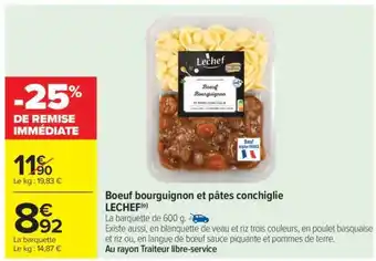 Boeuf bourguignon et pâtes conchiglie offres et promotions en ligne chez Carrefour Market
