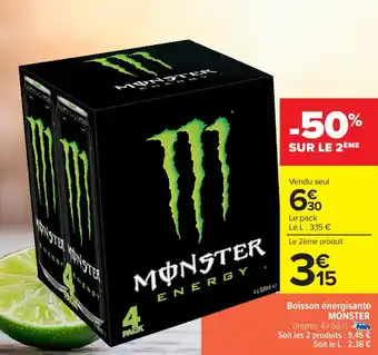 Actuellement, Boisson énergisante monster est en promotion chez Carrefour Market. Toutes les informations utiles comme le prix, les conditions et la durée de validité sont affichées sur cette page. Consultez également les promotions similaires pour Boisson énergisante monster, afin de faire le meilleur choix. La promo Boisson énergisante monster est valable du 26-12-2025 au 04-01-2026. Si elle est expirée, regardez les autres offres équivalentes. Vous pouvez aussi suivre cette catégorie de produit pour être alerté lorsqu’une nouvelle promotion Boisson énergisante monster apparaît chez Carrefour Market.Questions fréquemment posées au sujet de Boisson énergisante monster
