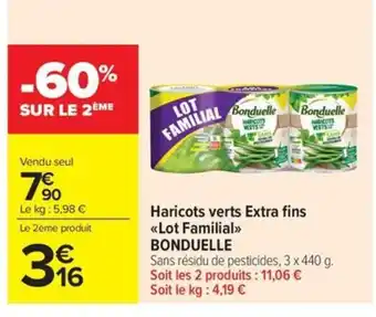 Offre BONDUELLE Haricots verts Extra fins Lot Familial chez Carrefour Market