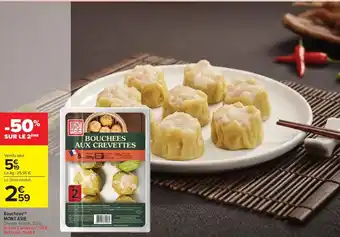 En plus de l'offre Bouchées mont asie, Carrefour Market propose une large gamme de produits. Consultez le Catalogue Carrefour Market hebdomadaire pour découvrir les meilleures offres et promotions. En plus de Bouchées mont asie, il y a aussi : Nems mont asie, Raviolis aux crevettes mont asie & Brioches au porc et champignons mont asie.