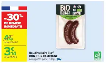 Boudins Noirs Bio BONJOUR CAMPAGNE offres et promotions en ligne chez Carrefour Market
