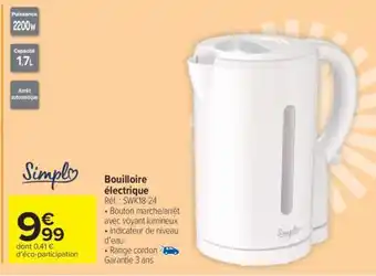 En plus de l'offre Bouilloire électrique, Carrefour Market propose une large gamme de produits. Consultez le Catalogue Carrefour Market hebdomadaire pour découvrir les meilleures offres et promotions. En plus de Bouilloire électrique, il y a aussi : Bouilloire électrique, Bouilloire électrique Enigma & Simpl bouilloire électrique.