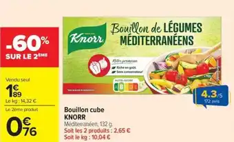 En plus de l'offre Bouillon cube knorr, Carrefour Market propose une large gamme de produits. Consultez le Catalogue Carrefour Market hebdomadaire pour découvrir les meilleures offres et promotions. En plus de Bouillon cube knorr, il y a aussi : KNORR Bouillon cube, Knorr - bouillon cube & Bouillon cube KNORR Méditerranéen, 132 g.