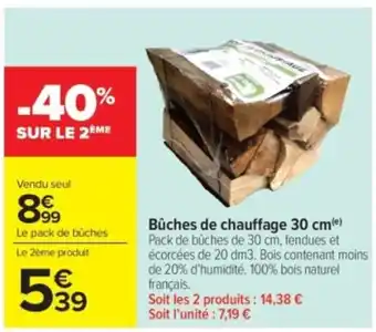 Actuellement, Bûches de chauffage est en promotion chez Carrefour Market. Toutes les informations utiles comme le prix, les conditions et la durée de validité sont affichées sur cette page. Consultez également les promotions similaires pour Bûches de chauffage, afin de faire le meilleur choix. La promo Bûches de chauffage est valable du 02-01-2026 au 11-01-2026. Si elle est expirée, regardez les autres offres équivalentes. Vous pouvez aussi suivre cette catégorie de produit pour être alerté lorsqu’une nouvelle promotion Bûches de chauffage apparaît chez Carrefour Market.Questions fréquemment posées au sujet de Bûches de chauffage