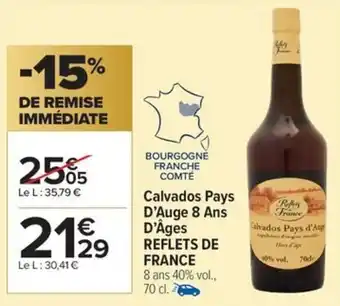 Actuellement en offre chez Carrefour Market : Calvados pays d'auge 8 ans d'âges reflets de france ✅ Valable du 9-12 au 24-12.