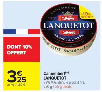 Actuellement en offre chez Carrefour Market : Camembert Lanquetot ✅ Valable du 17-02 au 1-03.