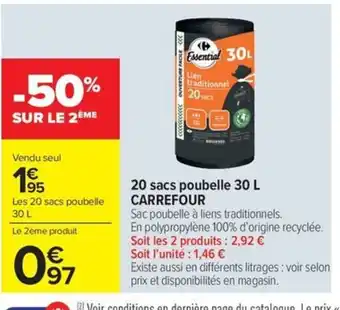 Actuellement en offre chez Carrefour Market : CARREFOUR 20 sacs poubelle ✅ Valable du 13-01 au 25-01.