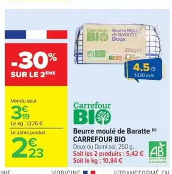 CARREFOUR BIO Beurre moulé de Baratte : offres et promos Carrefour Market à découvrir