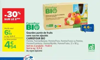 Y a-t-il une promotion sur CARREFOUR BIO Gourdes purée de fruits sans sucres ajoutés la semaine prochaine chez Carrefour Market ?