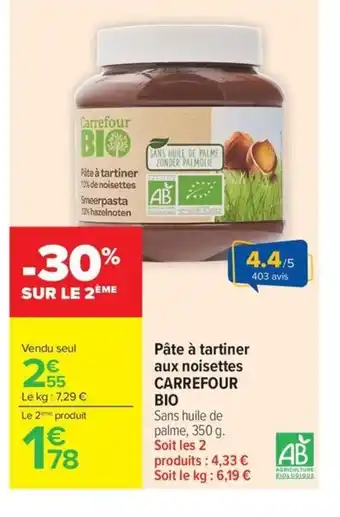 Actuellement en offre chez Carrefour Market : CARREFOUR BIO Pâte à tartiner aux noisettes ✅ Valable du 28-04 au 10-05.