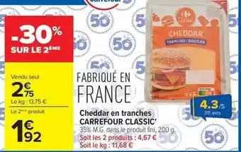Carrefour - cheddar en tranches : offres et promos Carrefour Market à découvrir