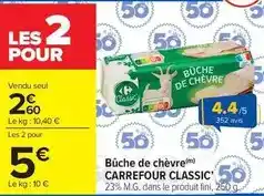 Actuellement en offre chez Carrefour Market : Carrefour - classic bûche de chèvre ✅ Valable du 20-01 au 2-02.