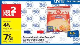 CARREFOUR CLASSIC Emmental râpé «Maxi Format» : offres et promos Carrefour Market à découvrir
