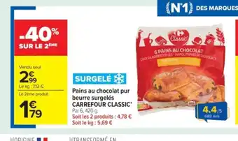 CARREFOUR CLASSIC Pains au chocolat pur beurre surgelés 420 g